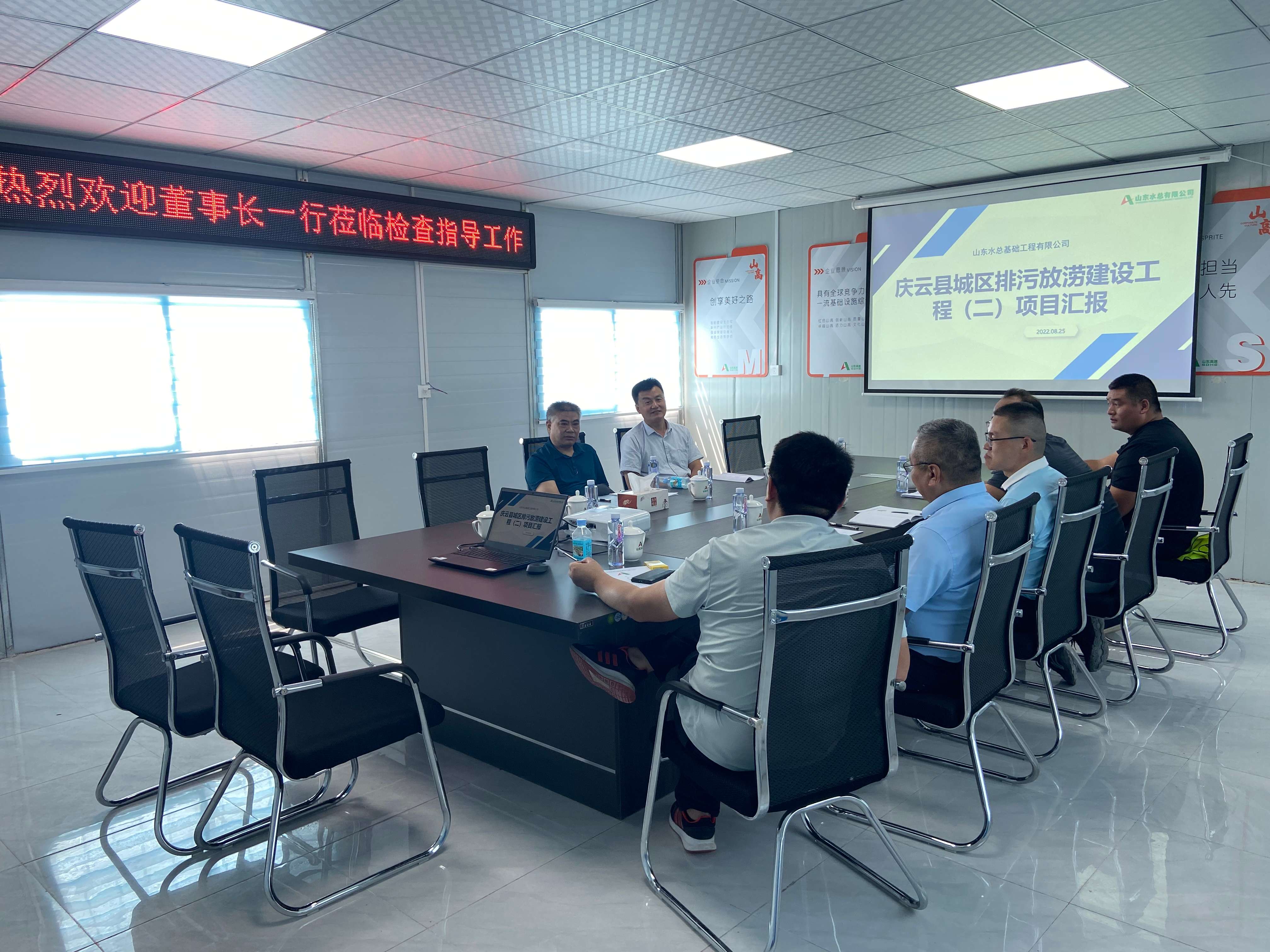 8月25日,公司党委书记、董事长刘深远到德州庆云县城区排水防涝建设工程二标段项目部调研指导工作,基础有限公司总经理朱兆同、副总经理张超陪同调研。